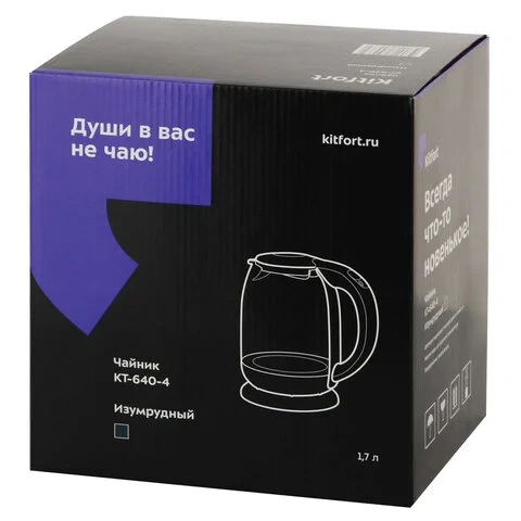 Чайник KITFORT КТ-640-4, 1,7 л, 2200 Вт, закрытый нагревательный элемент, ТЕРМОРЕГУЛЯТОР, стекло, из