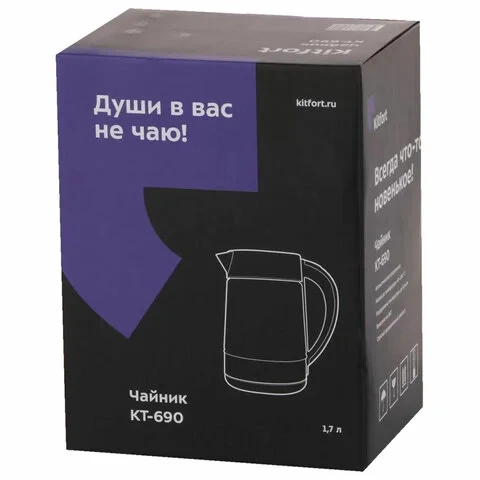 Чайник KITFORT КТ-690 – это идеальный выбор для ценителей чая и кофе, а также для тех, кто ценит удобство и безопасность. Этот чайник не просто кипятит воду – он позволяет нагревать её до температуры от 40 до 100 °C с шагом в 5 °C. Это особенно удобно для заваривания разных сортов чая, приготовления кофе или подогрева детского питания.