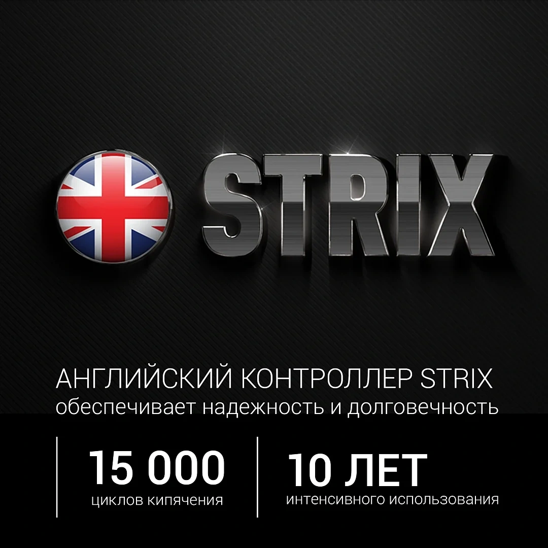 Чайник Polaris PWK 1899CA разработан на основе английского контроллера Strix, поэтому обеспечивает надежность и долговечность в эксплуатации. Он обладает хорошей вместительностью. Объема 1,8 л хватает на большую семью или компанию. Изделие быстро кипятит воду для чайной церемонии или утреннего кофе. На корпус изделия нанесена шкала контроля уровня воды, что позволяет доливать нужный объем воды. Корпус выполнен из нержавеющей стали, которая отлично противостоит коррозии, воздействию влаги, пыли, ультрафиолета. Чайник надолго сохраняет презентабельный внешний вид, не деформируется. Отличительной особенностью прибора мощностью 2200 Вт стало наличие специальной кнопки для безопасного открытия крышки. С ней исключена возможность нечаянно обжечься или перелить содержимое. В конструкцию встроен съемный фильтр для очистки воды, поэтому модель позволяет ежедневно наслаждаться вкусными и ароматными напитками: чаем, травяными настоями, эспрессо, латте или кофе. В чайнике предусмотрены также ручной и автоматический выключатели для экономии электроэнергии. Сам нагревательный элемент скрыт, что исключает контакт воды с ним. В конструкции есть специальный отсек для шнура, который обеспечивает удобство при транспортировке.