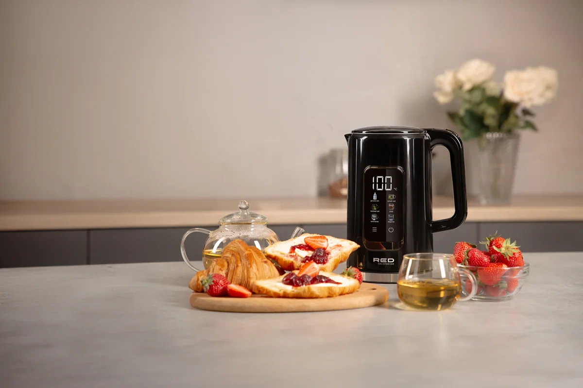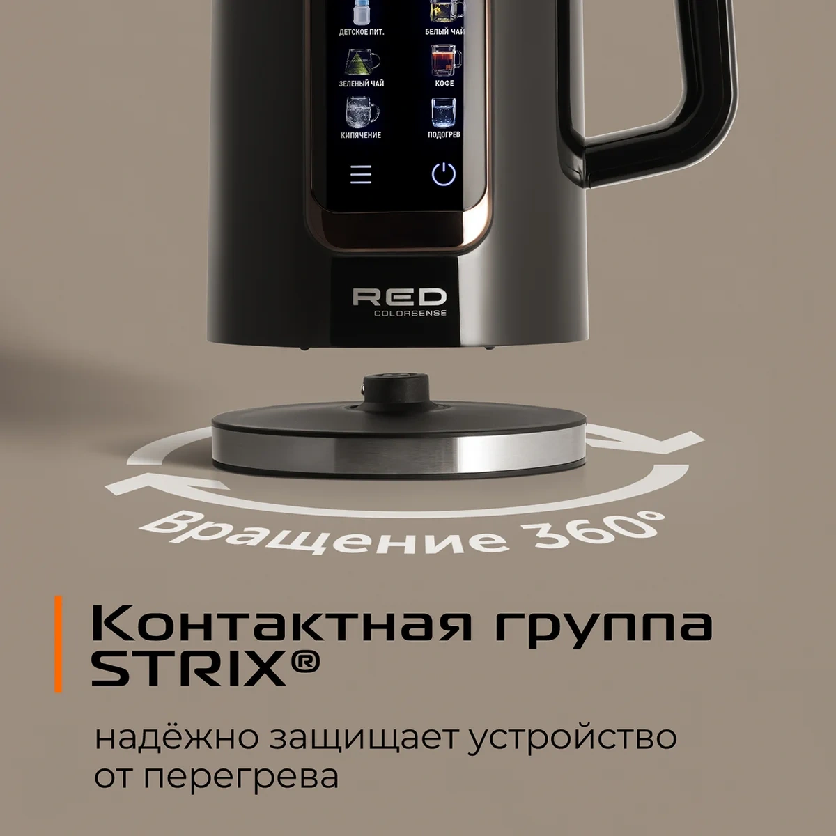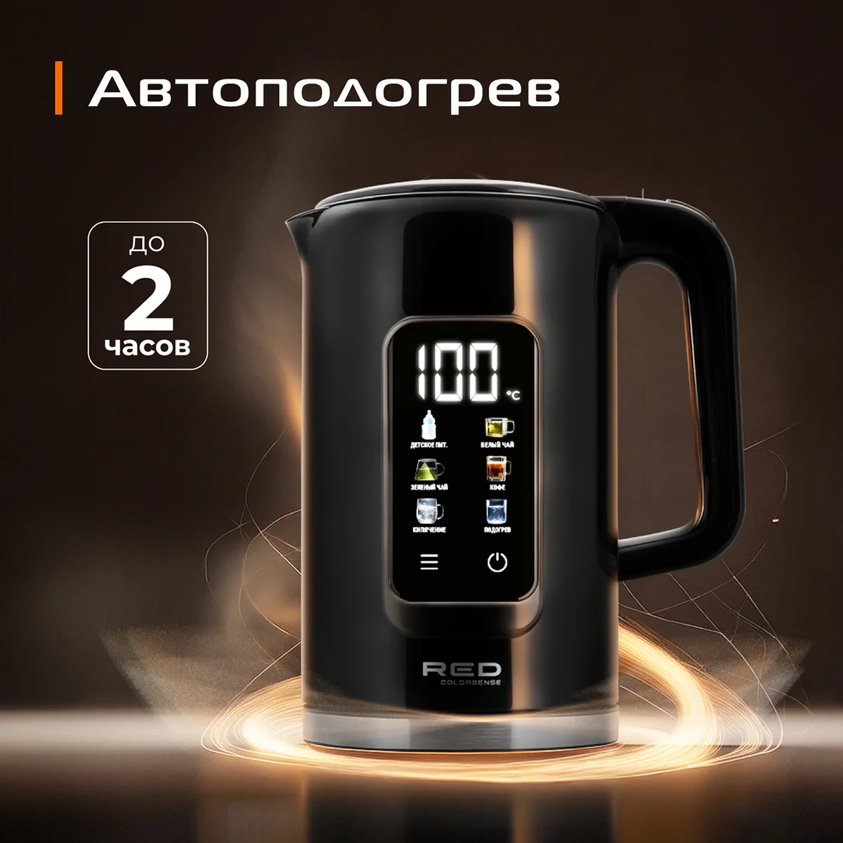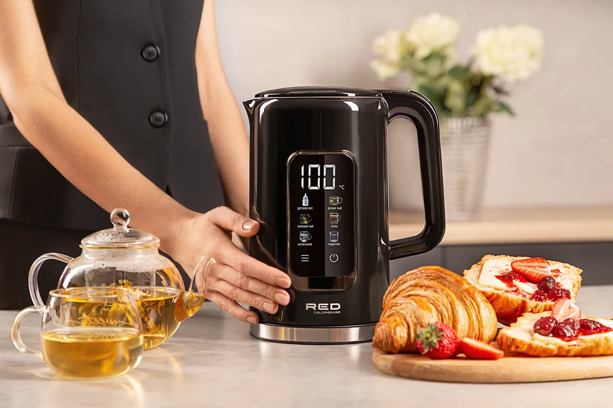 Электрический чайник с большим светодиодным дисплеем, на котором отображаются режимы нагрева и температура воды. Благодаря двойной стенке вода в чайнике остывает медленнее, а корпус не нагревается, даже когда вода кипит. Эта модель станет прекрасным подарком и стильным украшением кухни.