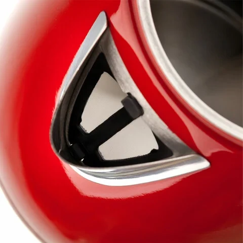 С помощью термометра можно контролировать температуру воды в чайнике, чтобы нагреть воду для определенного сорта чая. Корпус изготовлен из прочной нержавеющей стали и дополнен индикатором уровня воды. Для защиты от накипи в носик встроен фильтр.