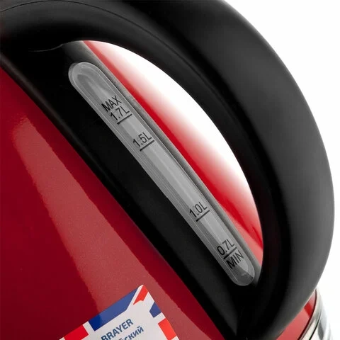 Чайник с термометром BRAYER BR1007RD, 1,7 л, 2200 Вт, закрытый нагревательный элемент, сталь, красны