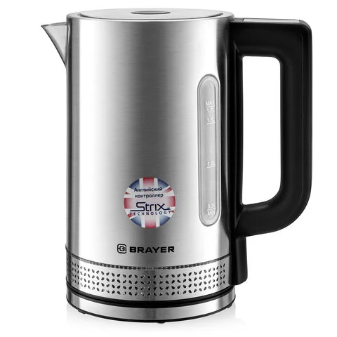 Чайник с терморегулятором BRAYER BR1060, 1,7 л, 2200 Вт, закрытый нагревательный элемент, сталь