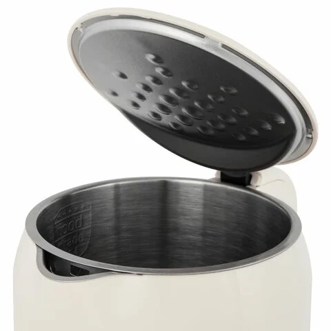 Объем чайника – 1,7 литра, что позволяет нагреть достаточное количество воды для нескольких человек. Мощность прибора составляет 2200 Вт, так вода нагревается до необходимой температуры за считанные минуты. Чайник имеет 7 температурных режимов, благодаря которым вы можете приготовить как детское питание, так и горячие напитки от различных сортов чая до бодрящего крепкого кофе.