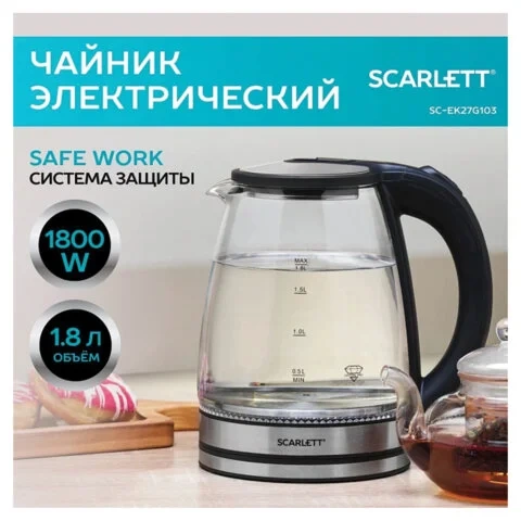 Отзывы о «Чайник SCARLETT SC-EK27G97, 1,7 Вт, 2200 Вт, закрытый нагреватеьный элемент, стекло, коричневый»