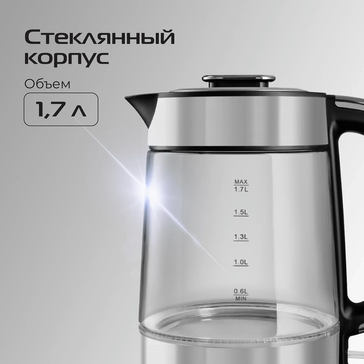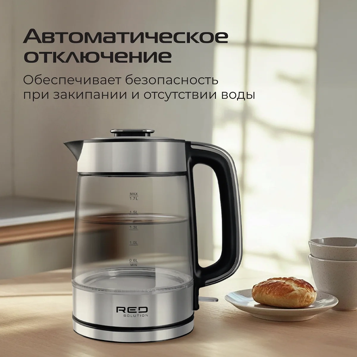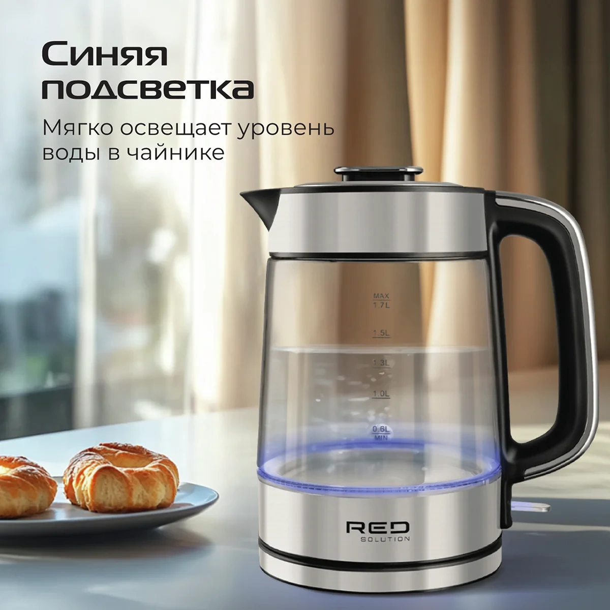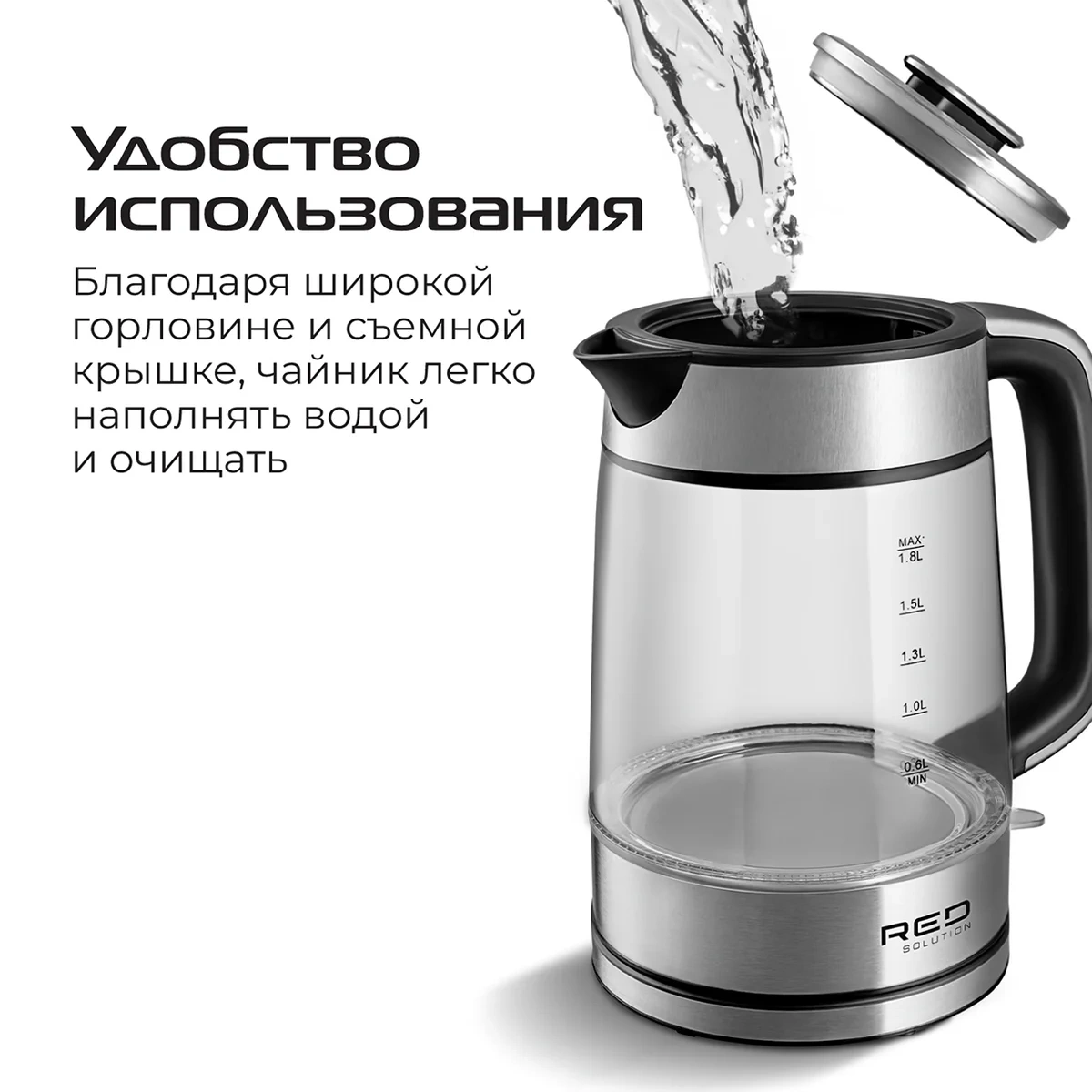 Прозрачный стильный чайник Red Solution G104 - идеальное решение для любителей горячих напитков. Мощность 2200Вт позволяет быстро вскипятить воду, прозрачный корпус и мерная шкала помогают определить уровень воды внутри, а широкая горловина и съемная крышка облегчают уход за прибором.