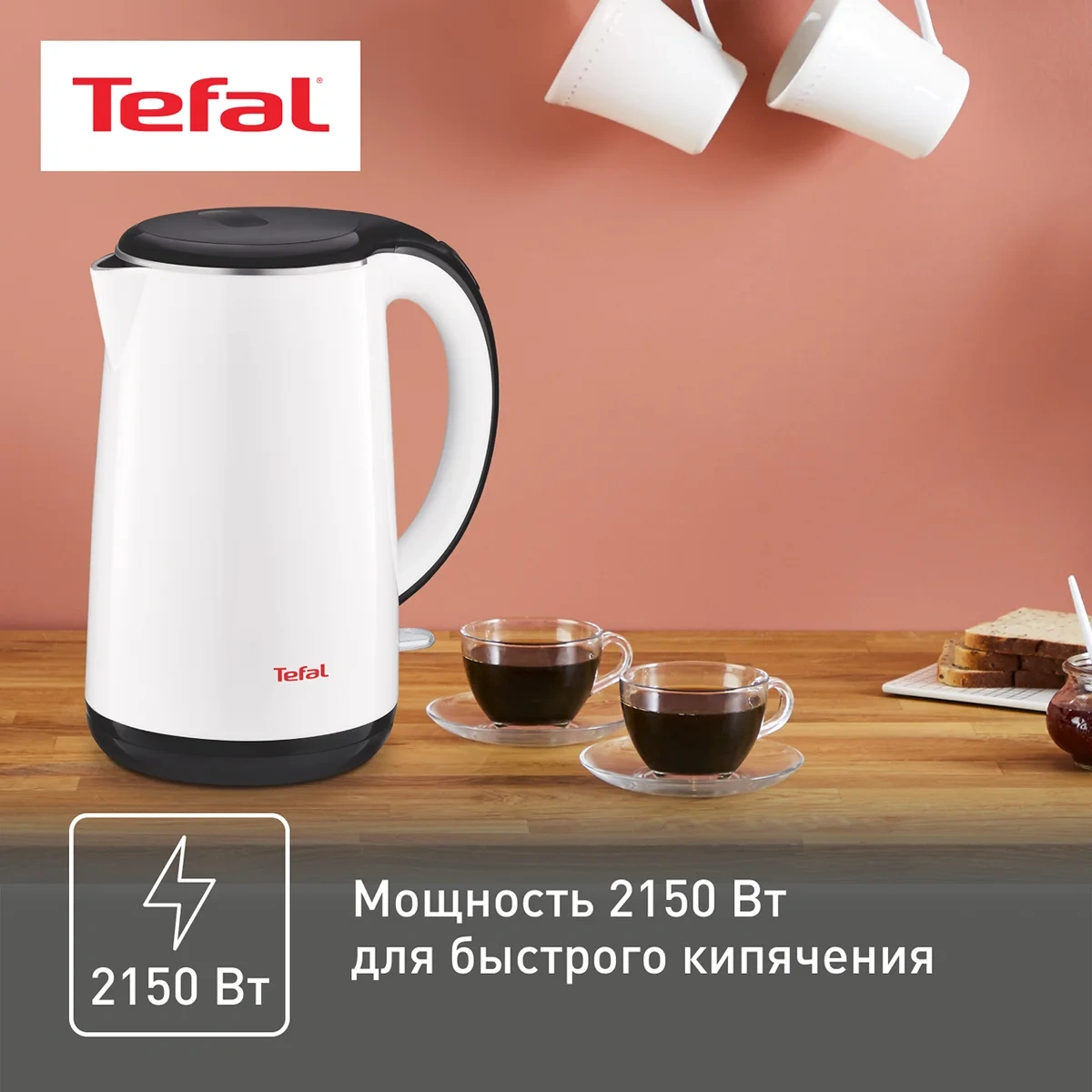 Tefal представляет новинку - мощный чайник Safe to Touch в элегантном белом корпусе с двойными стенками, которые защищают от ожогов. Удобная кнопка включения имеет световой индикатор, после закипания чайник в течение 30 минут поддерживает температуру воды в режиме термоса. Закипает за считанные минуты и, благодаря особенностям конструкции, может долго поддерживать температуру воды. В чайнике предусмотрена внутренняя колба из нержавеющей стали, заключенная в корпус из пластика, что обеспечивает эффект термоса.