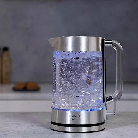 Чайник TIMBERK T-EK27G04, 2 л, 2200 Вт, закрытый нагревательный элемент, стекло, стальной
