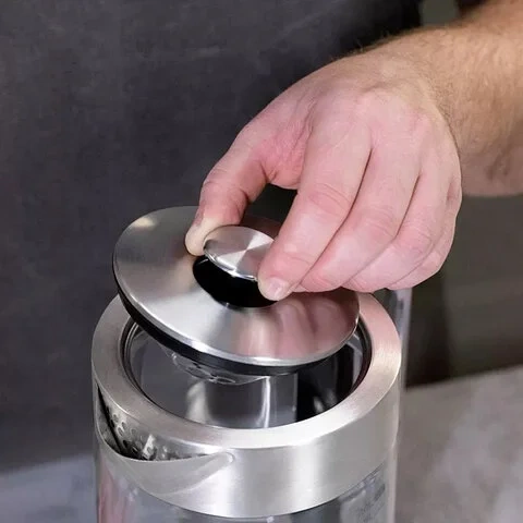 Чайник оснащен защитой от случайного открывания благодаря блокирующему механизму, расположенному на съемной крышке, что убережет кожу от риска появления ожогов.