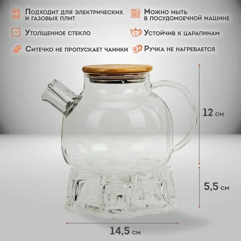 Размеры чайника: высота - 12 см, диаметр основания - 14 см.
