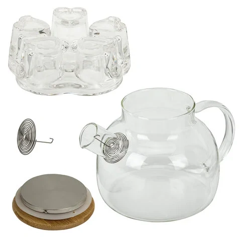 Заварочный чайник с подставкой для свечи изготовлены из утолщенного жаропрочного стекла. Устойчивы к царапинам и помутнениям. Выдерживают перепады температур от -30 до +400 градусов по Цельсию. Подходят для электрических и газовых плит. Чайник и подставку можно мыть в посудомоечной машине.