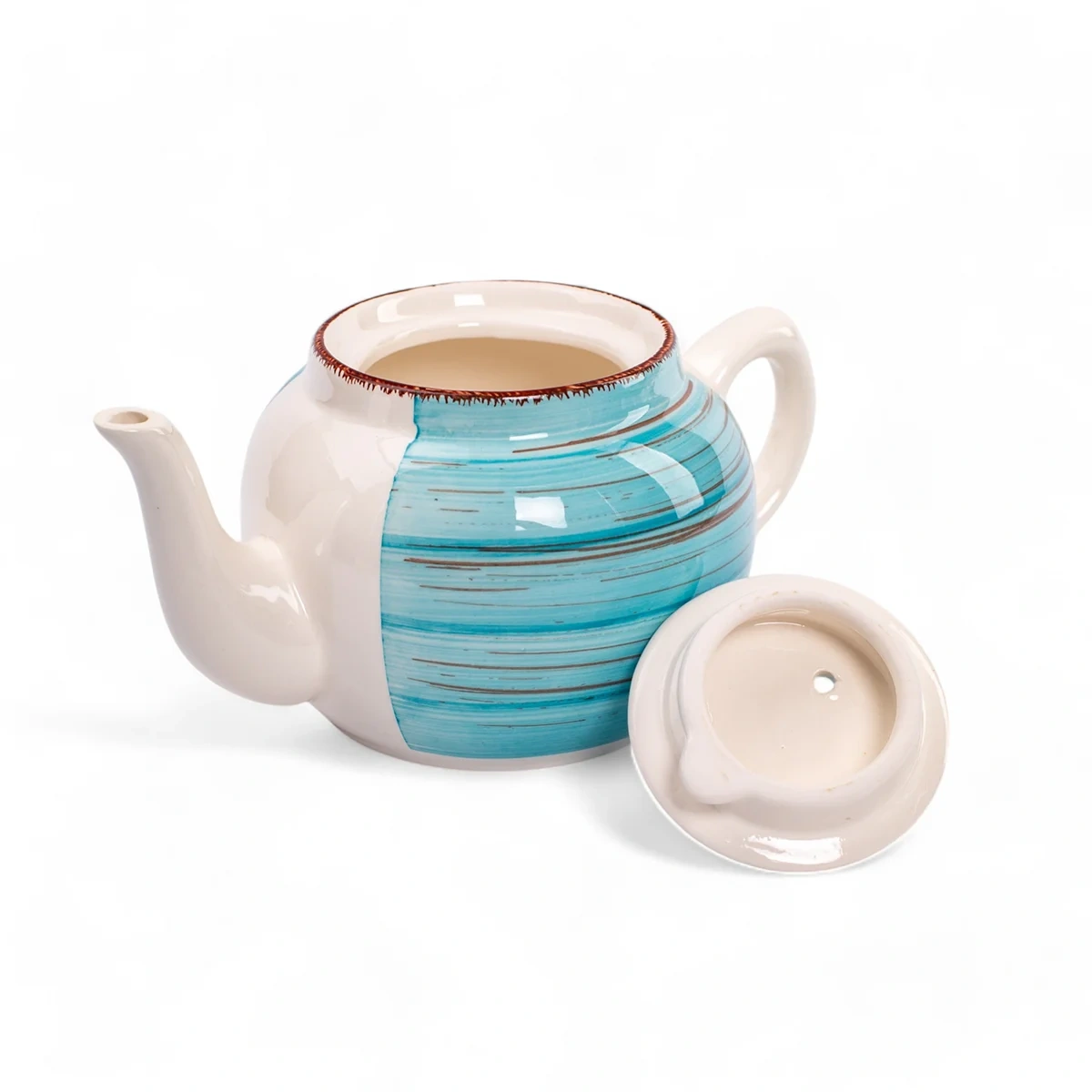 Заварочный чайник в бирюзовых оттенках создаёт атмосферу океанской свежести и уюта. Бирюзовые тона успокаивают и расслабляют, напоминая о море и пляже. Керамика не впитывает запахи и не меняет вкус продуктов, поэтому напитки, поданные в таком чайнике, будут иметь натуральный вкус и аромат. Интерьер наполнится свежестью и уютом благодаря изысканному дизайну и приятной цветовой гамме. Можно использовать в микроволновой печи и мыть в посудомоечной машине.