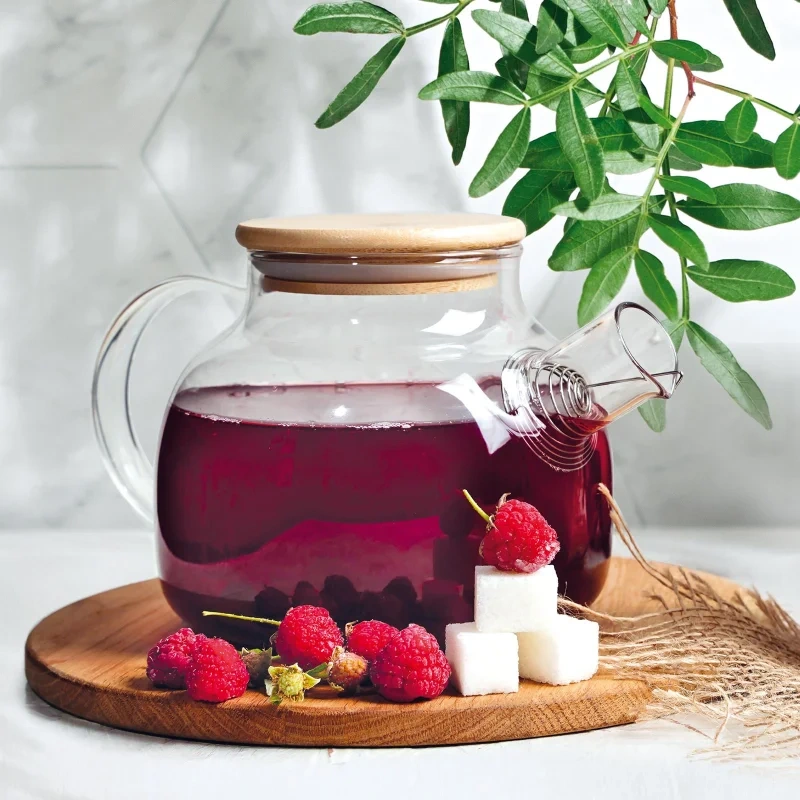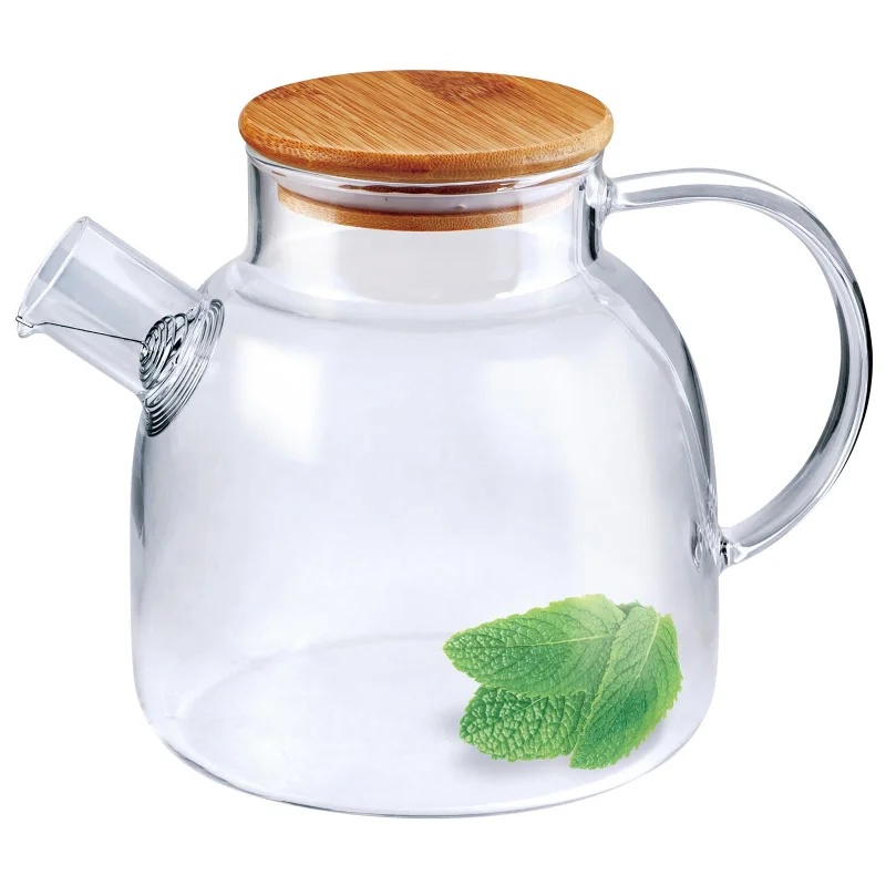 Чайник изготовлен из термостойкого стекла, которое сохраняет натуральный вкус и аромат напитков. Стекло не впитывает запахи и легко очищается. Чайник оснащен бамбуковой крышкой, придающей изделию стильный вид.