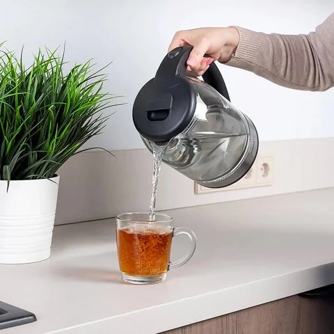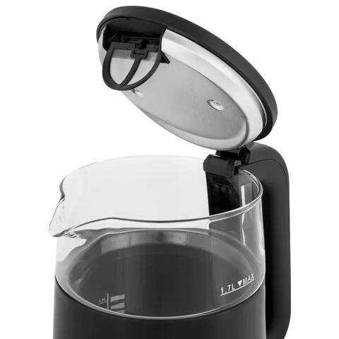 Чайник BRAYER BR1048, 1,7л, 2200 Вт, закрытый нагревательный элемент, стекло, черный