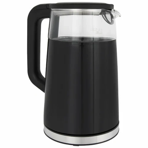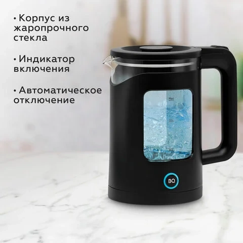 Чайник BQ (БИ-КЬЮ) KT2000G, 1,5 л, 1500 Вт, закрытый нагревательный элемент, стекло, черный, 8619673