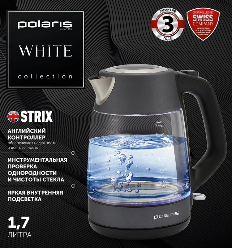 Чайник Polaris PWK 1817CGL — идеальное приобретение для любой кухни. Он изготовлен из экологически ч...