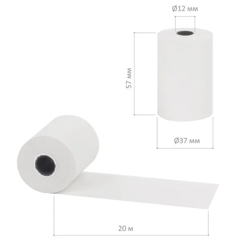 Лента состоит из одного слоя бумаги с нанесенным на него термоактивным покрытием. Бумага используется та же, что и для производства роликов для факсов. Ширина 57 мм. Длина намотки 25 м. Диаметр втулки 12 мм. Плотность 48+/-5 гр/м2 Толщина 55+/-2 мкм. Белизна 83+/-2%