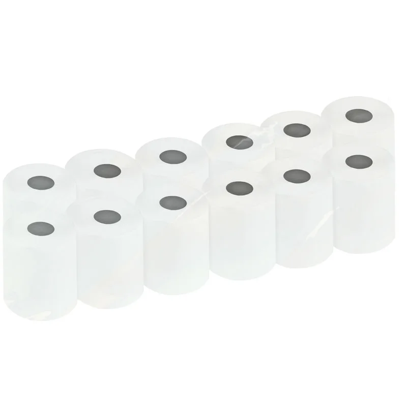 Чековая лента OfficeSpace состоит из одного слоя бумаги с нанесенным на него термоактивным покрытием. Бумага используется та же, что и для производства роликов для факсов. Ширина – 57 мм. Длина намотки – 27 метров. Диаметр втулки – 12 мм. Плотность – 48+/-5 г/м2. Толщина – 55+/-2 мкм. Белизна – 83+/-2%.