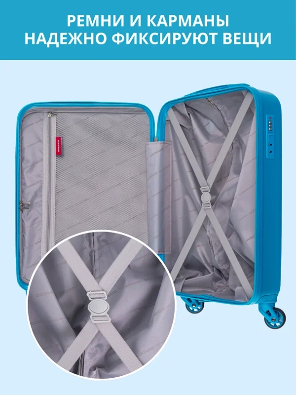 Чемодан Sirocco Sunstone бирюзовый в полоску S ABS, 35 х 20 х 55см