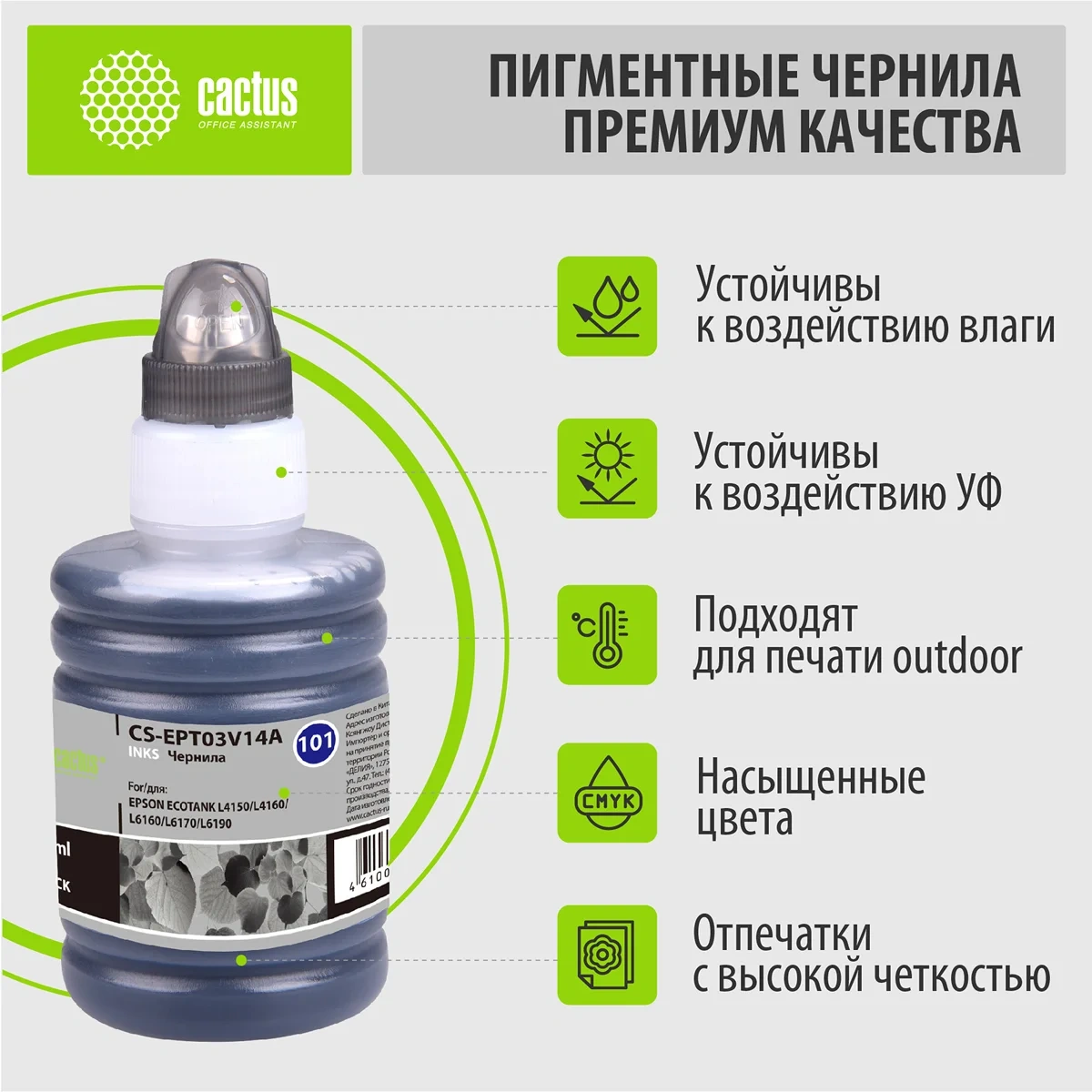 Чернила Cactus CS-EPT03V14A 101BK черный 127мл для Epson L4150/L4160/L6160/L6170