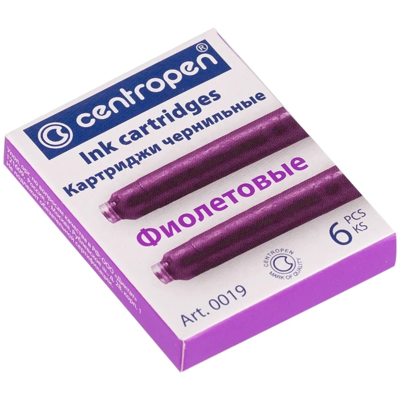Картридж для перьевой ручки Centropen фиолетовый, 6шт/уп