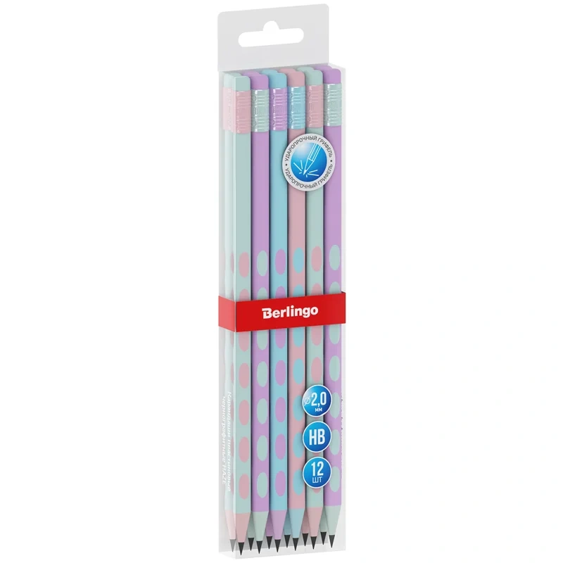 Карандаш ч/г Berlingo 'Haze' HB, пластиковый, трехгранный, с выемками, заточен., с ластиком, PET-бок