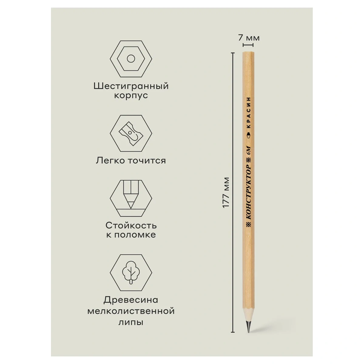 Карандаш ч/г Красин 'Конструктор' 6М (6B) шестигран., заточен.