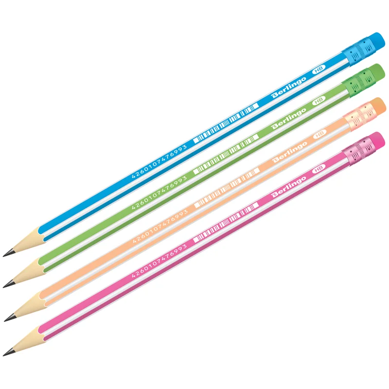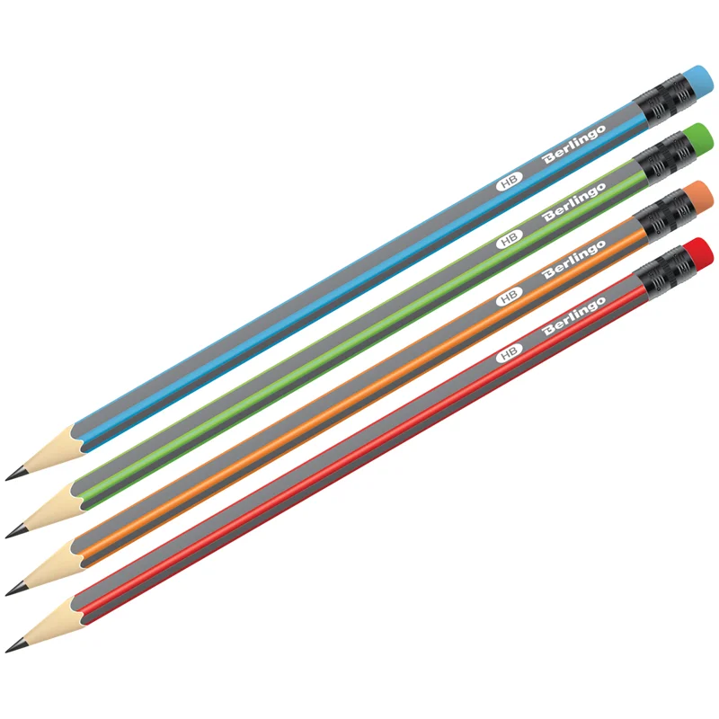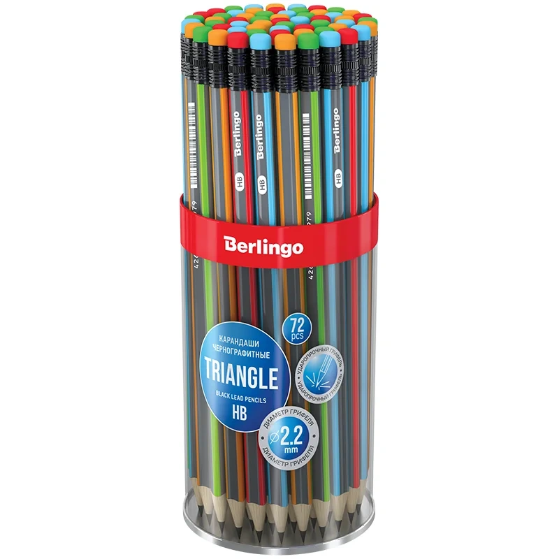 Карандаш чернографитный Berlingo Triangle HB, с ластиком, ассорти