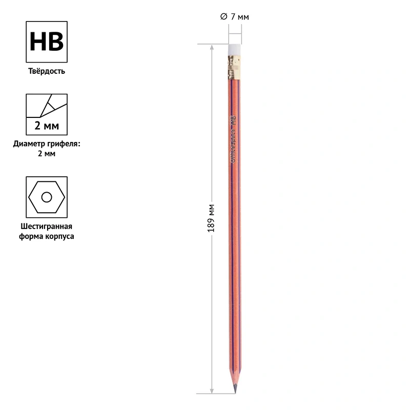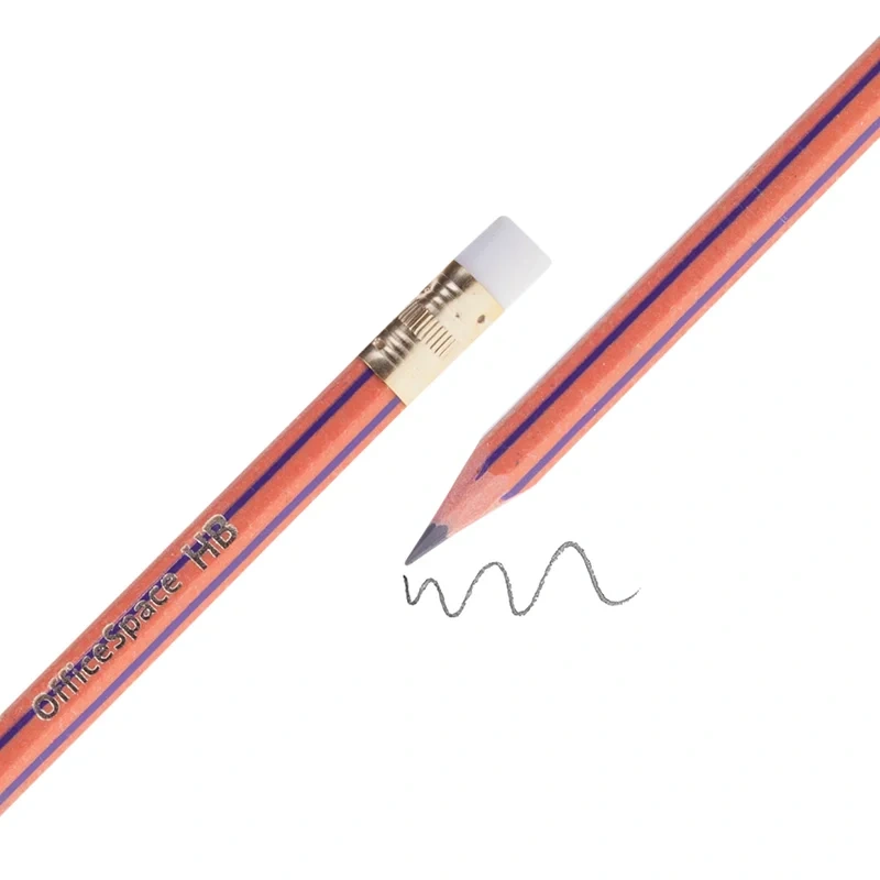 Карандаш чернографитный Officespace HB, заточенный, с ластиком, полосатый
