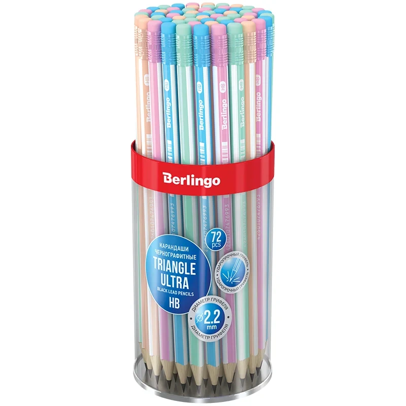 Карандаш чернографитный Berlingo Triangle ultra HB, с ластиком, ассорти
