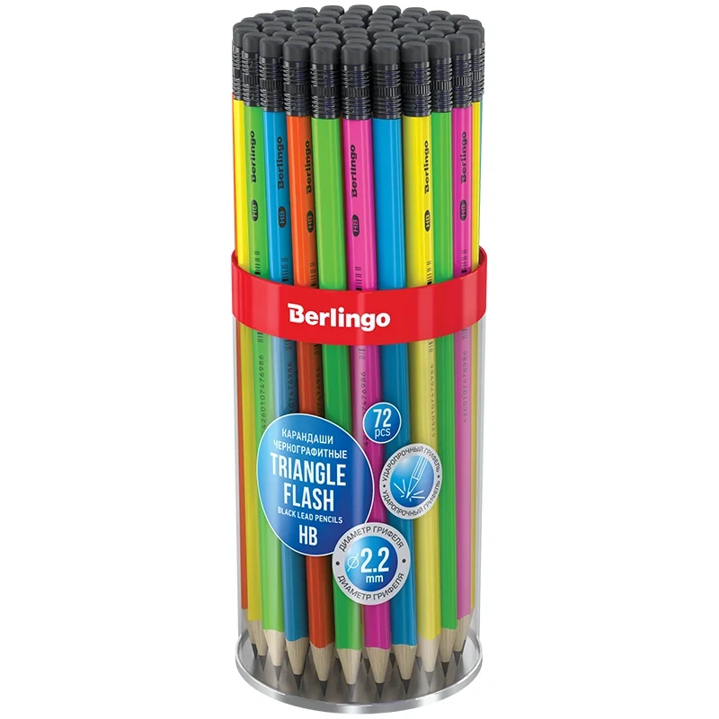 Карандаш чернографитный Berlingo Triangle flash HB, с ластиком, ассорти