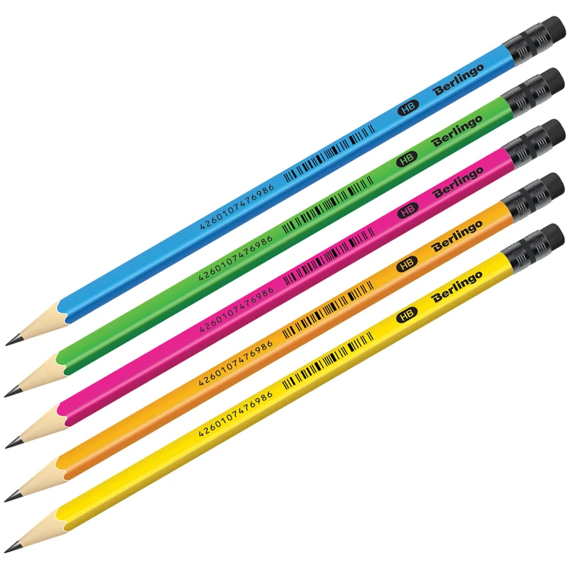 Карандаш чернографитный Berlingo Flexy Neon HB, без ластика, ассорти