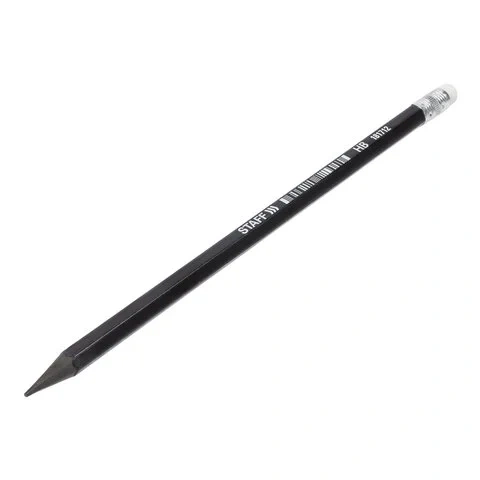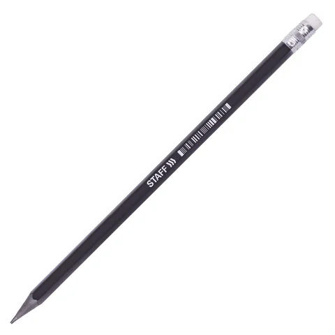 Карандаш чернографитный STAFF 'College' BLP-712, 1 шт., НВ, с ластиком, пластик, корпус черный, 1817