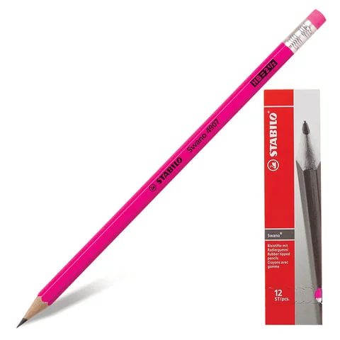 Карандаш чернографитный Stabilo Swano НВ, с ластиком, розовый корпус