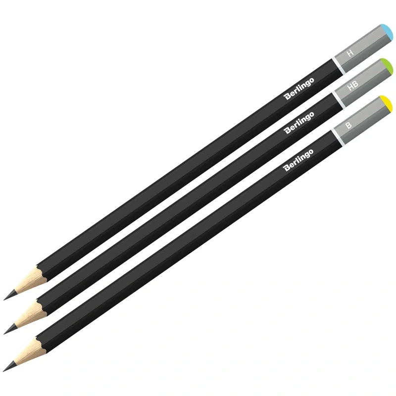 Набор чернографитных карандашей Berlingo H, HB, B, 3шт