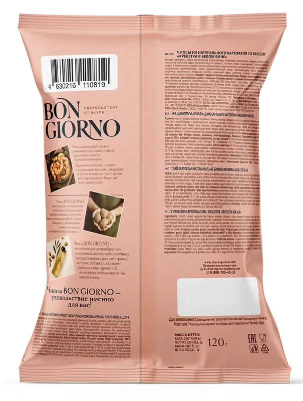 Чипсы Bon Giorno креветка в белом вине, 120г