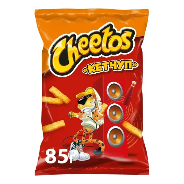 Чипсы Cheetos Кетчуп можно использовать в качестве питательного и вкусного перекуса на работе, в дороге или в путешествиях. Продукт хорошо сочетается с прохладительными, кисломолочными и пенными напитками. Снек внешним видом напоминает палочки, которые удобно брать руками и макать в различные соусы. Чипсы изготовлены из кукурузной муки, содержащей большое количество полезных витаминов и минералов, оказывающих благоприятное влияние на различные органы организма. Продукт обладает хрустящей текстурой, приятным вкусом и насыщенным ароматом. Снек на длительное время устраняет чувство голода. Аппетитные палочки упакованы в герметичный металлизированный пакет небольшого размера, который занимает мало места в сумке.