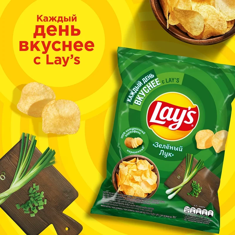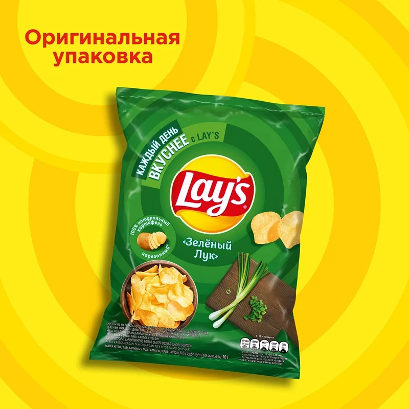 Lay's - чипсы, каждая пачка которых изготовлена из специально отобранного картофеля и соответствует самым высоким стандартам качества. Вкус аппетитных малосольных огурчиков с укропом в сочетании с хрустящими чипсами из натурального картофеля.