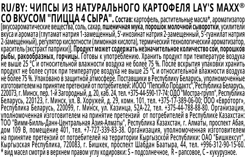 Картофель, растительные масла, ароматизатор, лактоза, соль, глюкоза, усилители вкуса и аромата: глутамат натрия (1-замещенный), гуанилат натрия (2-замещенный), инозинат натрия (2-замещенный), вкусоароматические вещества, молочная сыворотка, сушеная зелень, укроп, петрушка, антислеживающий агент, диоксид кремния аморфный, регулятор кислотности: лимонная кислота.