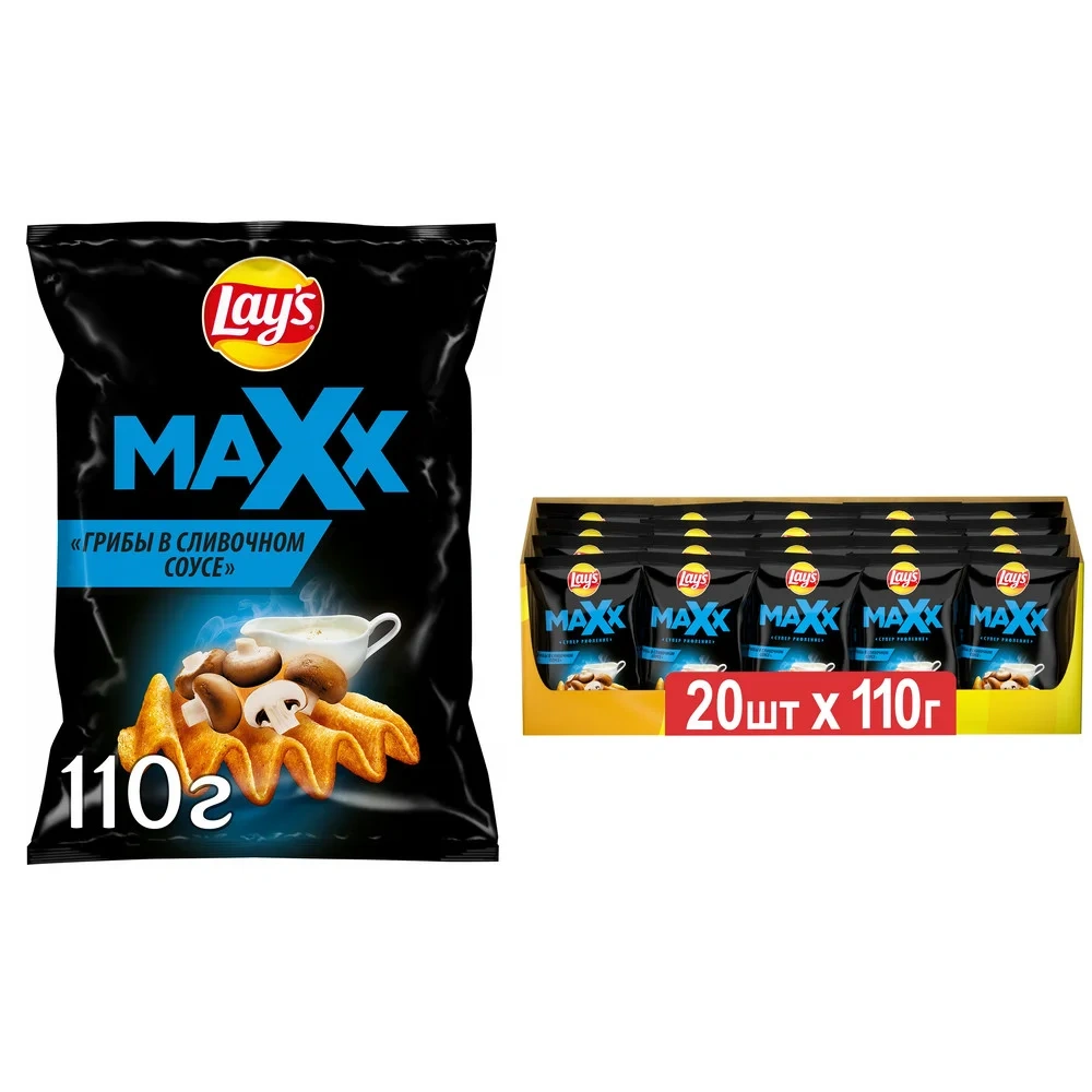 Чипсы Lay's Maxx рифленые со вкусом Грибы в сливочном соусе, 110г чипсы, каждая пачка которых изготовлена из специально отобранного картофеля и соответствует самым высоким стандартам качества.
