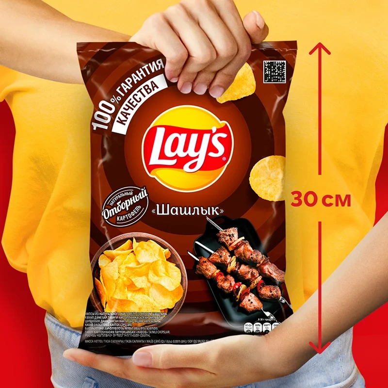 Чипсы Lay's шашлык, 140г — это натуральный продукт, в основе которого — отборный картофель высокого качества. Чипсы изготавливают на современном оборудовании, после чего обжаривают в подсолнечном масле. Необычный вкус и аромат снекам придают различные добавки. Чипсы соответствуют стандартам качества. Их выпускают в герметичных упаковках, выполненных в лаконичном дизайне. Хранить такие чипсы следует в сухом прохладном месте. Этот продукт подойдет в качестве перекуса — его приятно съесть во время просмотра фильма или беседы с друзьями. Чипсы хорошо сочетаются с холодными напитками, например, лимонадом. Они помогают утолить голод и насытиться.