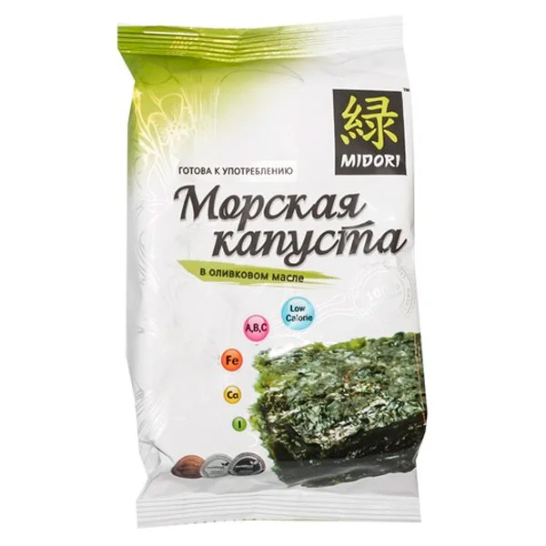 Чипсы нори MIDORI в оливковом масле, по текстуре напоминающие бумагу, хорошо дополняют мягкий рис и морепродукты, являясь основой многих традиционных рецептов, начиная с суши и заканчивая лапшой с бульоном. Засушенные листы морской капусты, впоследствии обжаренные до хруста, широко используются в национальных японской и корейской рецептурах. Можно собрать компанию друзей и устроить вечер азиатской кухни, сначала приготовив роллов на всех, а потом проведя дегустацию того, что получилось, или даже, блеснув кулинарными талантами. удивить романтическим ужином с суши свою вторую половину. Производитель: Midori, Южная Корея.Состав: морская капуста, оливковое масло, соль.Пищевая ценность: белки — 1,3 г, углеводы — 1 г, жиры — 2 г.Энергетическая ценность: 319 ккал. Срок годности: 12 месяцев.