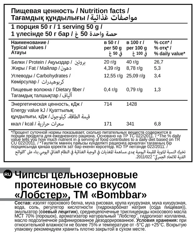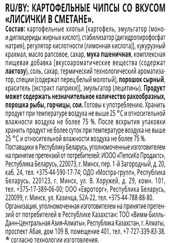 Картофель, масло растительное, комплексная пищевая добавка. В состав бекона входят мука пшеничная, соль, глюкоза, усилители вкуса и аромата: глутамат натрия (1-замещенный), гуанилат натрия (2-замещенный), инозинат натрия (2-замещенный), гидролизованный белок, вкусоароматические вещества и препараты, в том числе коптильный ароматизатор. Также присутствуют красители: экстракт паприки, сахарный колер; антислеживающий агент - диоксид кремния аморфный; антиокислитель - альфа-токоферол.Характеристики