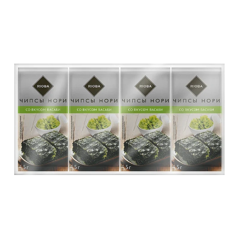 Подойдут для приготовления традиционных блюд корейской и японской кухни в более пикантном варианте. Пластины, изготовленные из сушеных листьев красной водоросли, прошли обжарку с обеих сторон оливковым маслом, а после были обработаны составом приправ, который включает жгучий корень васаби. Чипсы Rioba можно употреблять в пищу как в качестве самостоятельного продукта, так и использовать как основу для суши или добавку к лапше на рыбном или мясном бульоне. К примеру, порезанные на полоски водоросли используются во многих супах азиатской кухни в сочетании с морепродуктами и овощами.