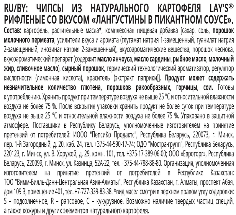 Чипсы рифленые Lay's Лангустины в пикантном соусе, 93г