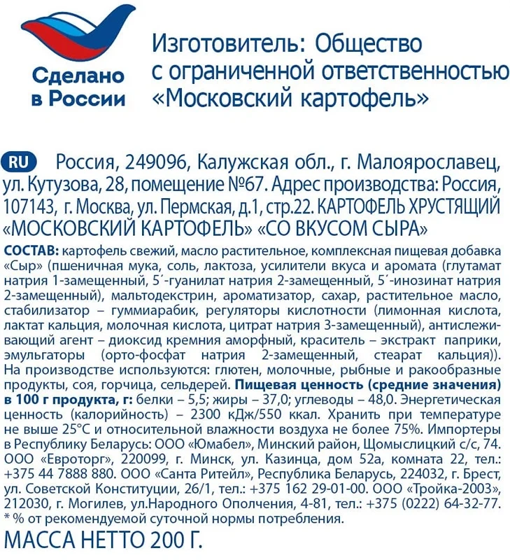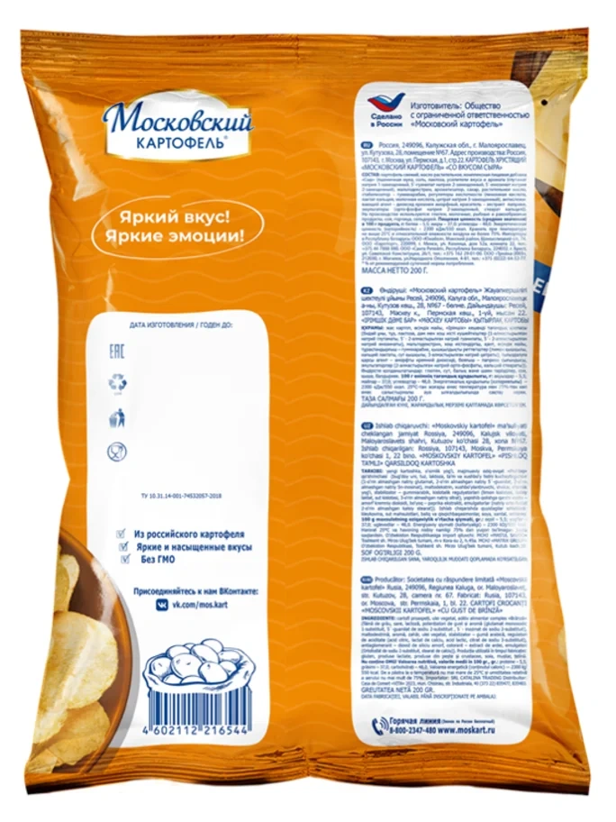 Чипсы Московский картофель сыр, 200г