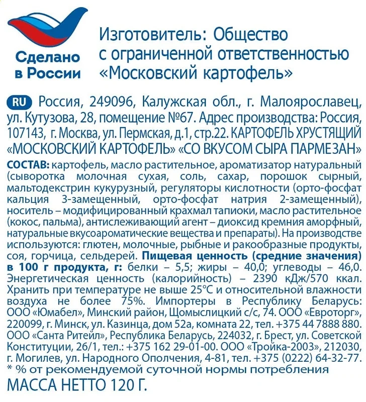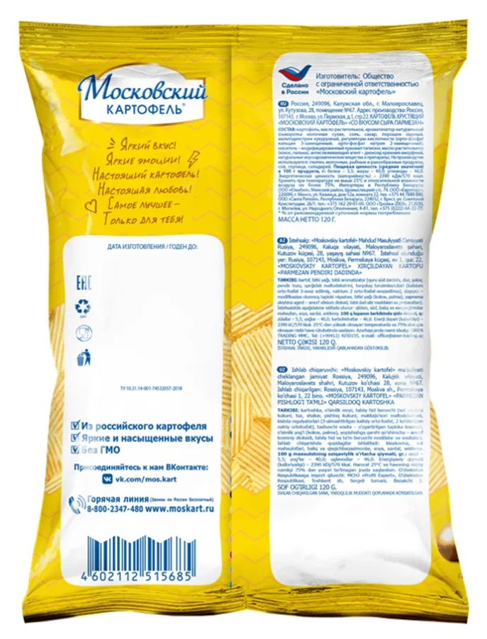 Чипсы Московский картофель рифленые сыр пармезан, 120г
