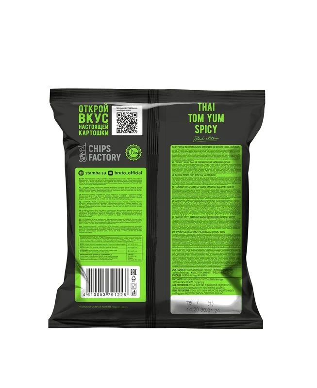 Чипсы Bruto Black Edition Тайский острый Том Ям, 75г