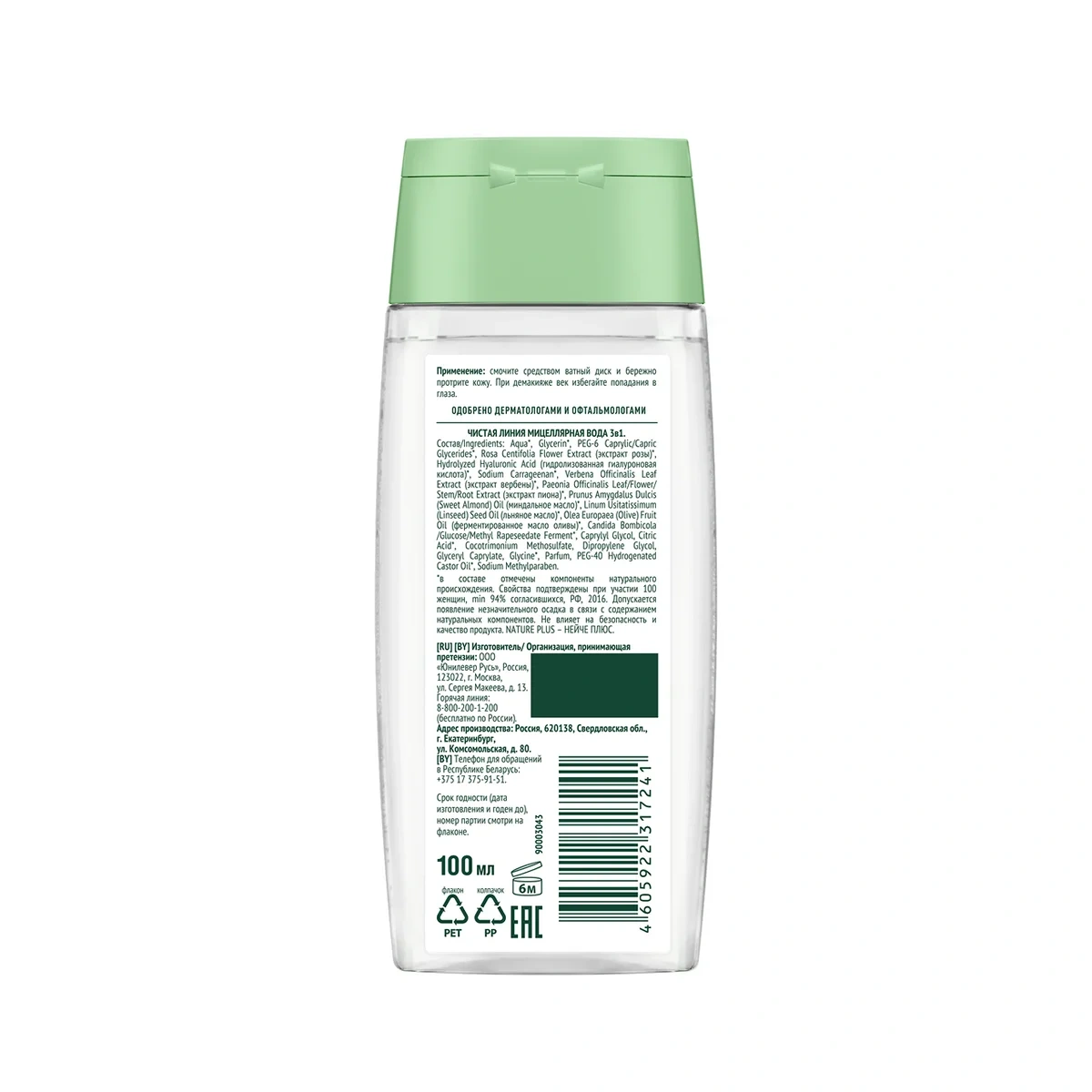Вода мицеллярная Чистая Линия 3в1 цветочная с детокс-эффектом для всех типов кожи, 100мл