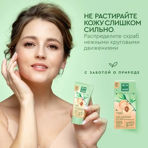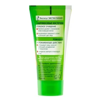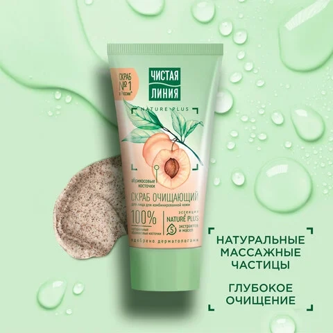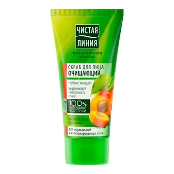 Для здорового, сияющего цвета лица эксперты бренда ЧИСТАЯ ЛИНИЯ рекомендуют обладательницам комбинированной и сбалансированной кожи 1-2 раза в неделю использовать скраб с абрикосовыми косточками. Он активно освобождает кожу от ороговевших клеток, выравнивая ее, натуральные массажные частицы придают лицу здоровый цвет. ЧИСТАЯ ЛИНИЯ использует твердую оболочку абрикосовой косточки, которая измельчается до нужного размера и добавляется в скрабы как высокоэффективный природный эксфолиант. Скраб разработан с учетом потребностей комбинированной кожи. Эссенция из пяти экстрактов и масел NATURE PLUS (экстракт вербены, экстракт пиона, масла миндаля, льна, оливы) восстанавливает и тонизирует кожу во время очищения.